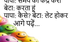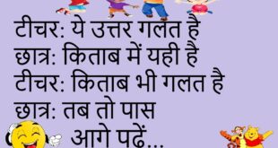 दोस्त: आजकल पढ़ते नहीं? जवाब: पढ़ते हैं दोस्त: क्या? जवाब: व्हाट्सऐप 😄 **************************************** पापा: खर्च कम करो बेटा: ठीक है पापा: कैसे? बेटा: सपने छोटे कर लिए 😂 **************************************** बॉस: बहाने क्यों? कर्मचारी: आदत बन गई है बॉस: काम की? कर्मचारी: नहीं 😜 **************************************** पत्नी: बात समझ में आती है? पति: हां पत्नी: फिर करते क्यों नहीं? पति: रिस्क ज्यादा …