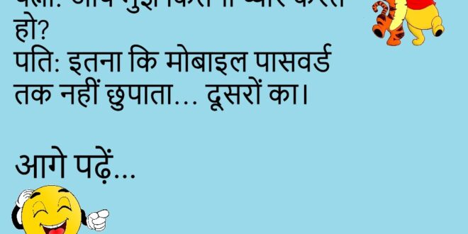 पति: इतना कि मोबाइल पासवर्ड तक नहीं छुपाता… दूसरों का।😊😊😊😊