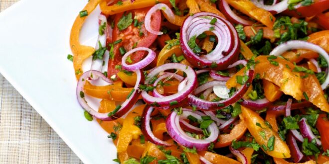 - सलाद में कच्चे प्याज के स्लाइस और बारीक कटी हरी मिर्च मिलाएं।