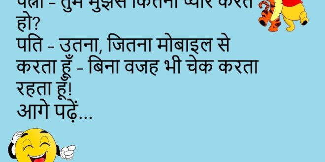 पति – उतना, जितना मोबाइल से करता हूँ – बिना वजह भी चेक करता रहता हूँ! 📱🤣
