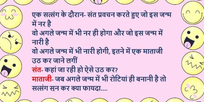 माताजी- जब अगले जन्म में भी रोटियां ही बनानी है तो सत्संग सुन कर क्या फायदा….😅😜🤣🤣🤣🤣😝😝😝